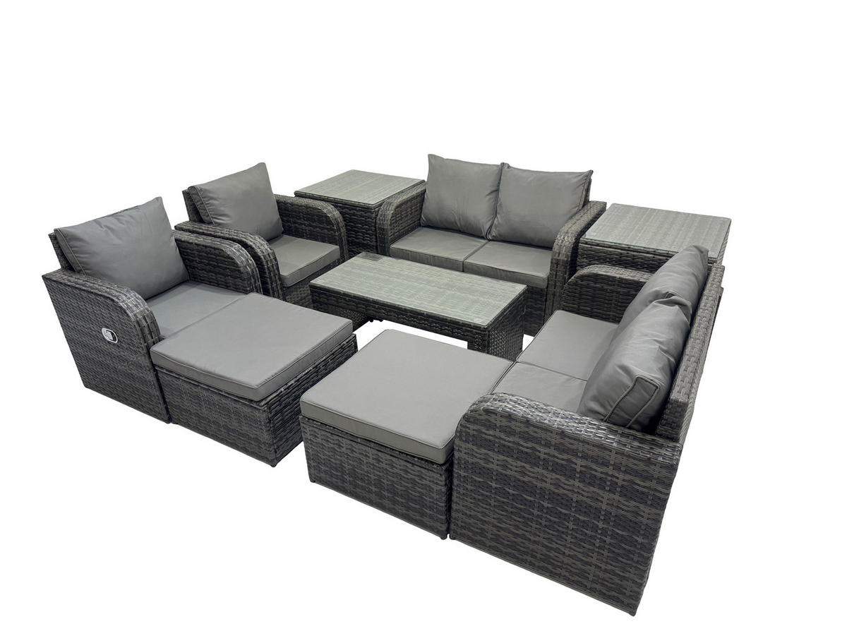Fimous GARTENSOFA SET mit LIEGESTUHL Polyrattan 8-Sitzer Dunkelgrau