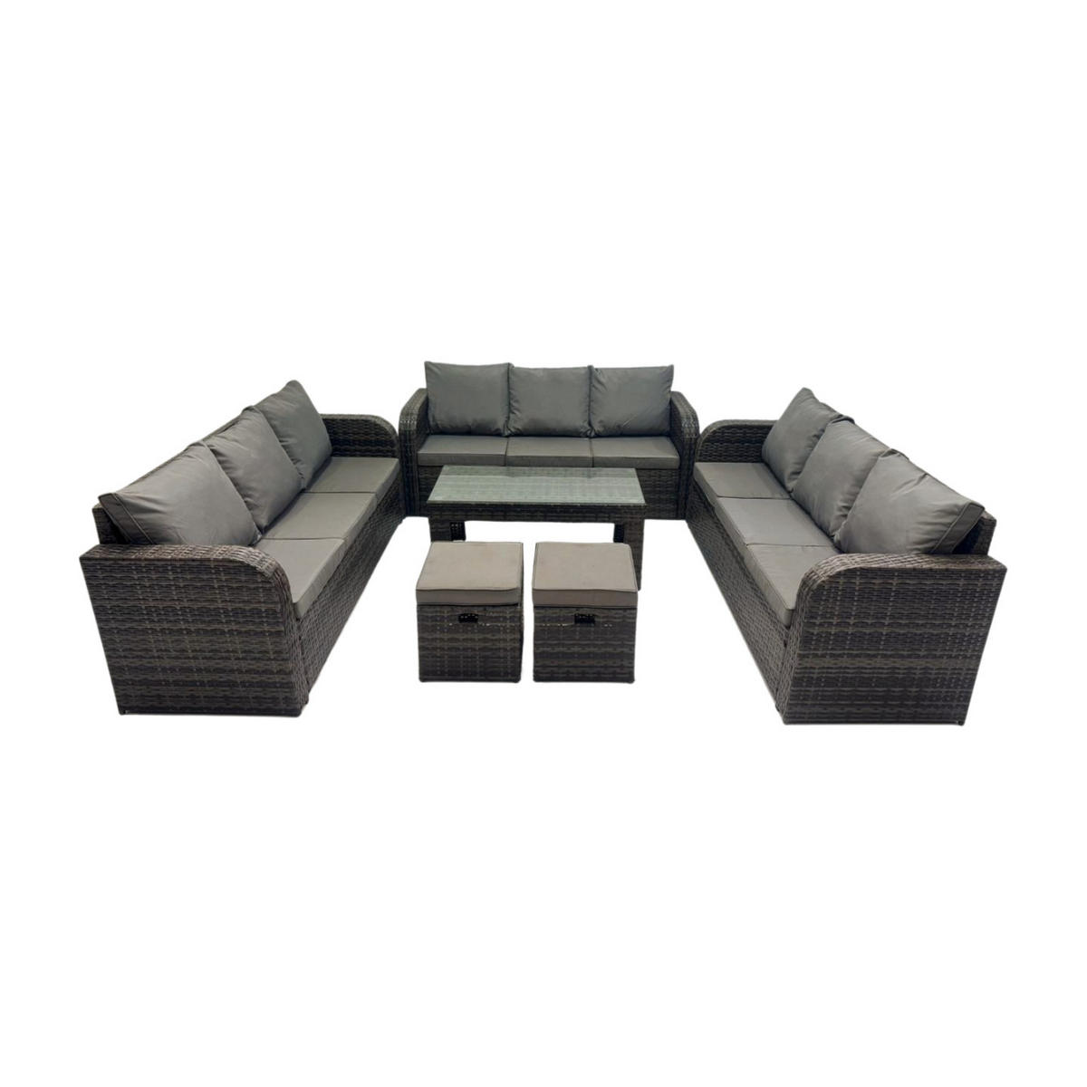 Fimous GARTENSOFA SET mit rechteckigem COUCHTISCH Polyrattan 11-Sitzer Dunkelgrau