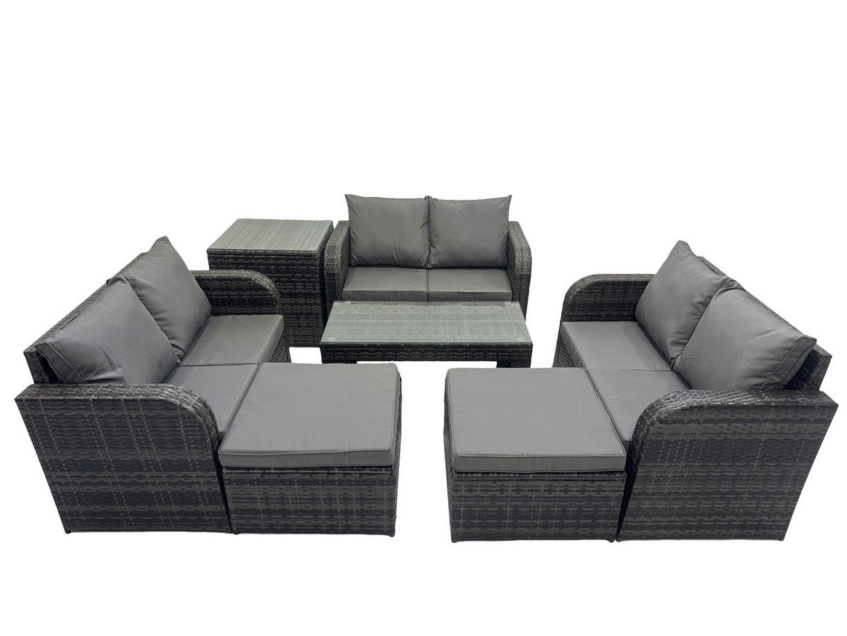 Fimous GARTENSOFA SET mit rechteckigem COUCHTISCH Polyrattan 8-Sitzer Dunkelgrau