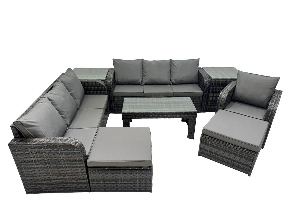 Fimous GARTENSOFA SET mit rechteckigem COUCHTISCH Polyrattan 9-Sitzer Dunkelgrau