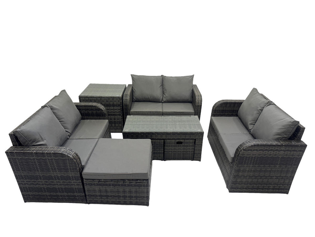 Fimous GARTENSOFA SET mit rechteckigem COUCHTISCH Polyrattan 9-Sitzer Dunkelgrau