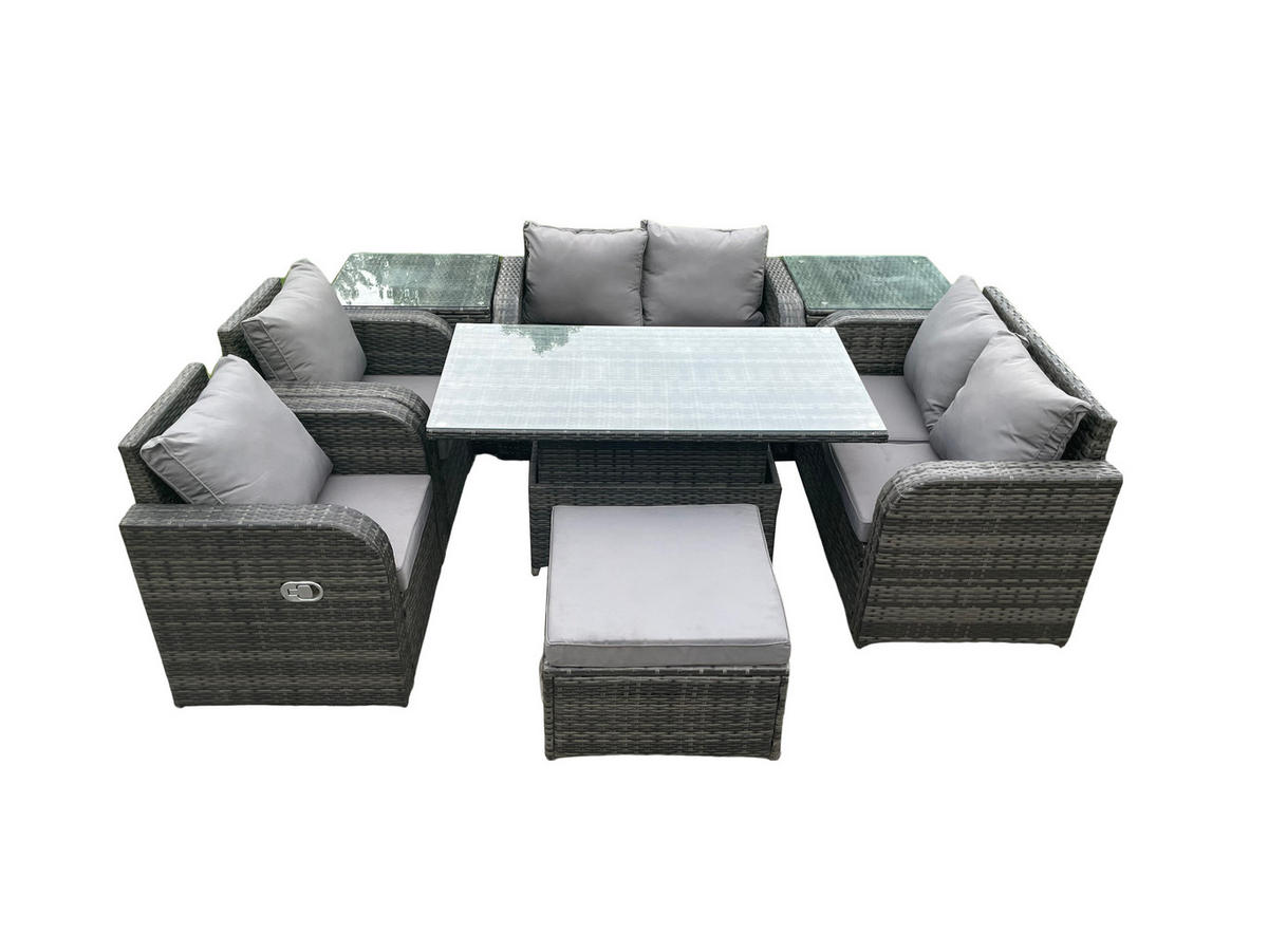 GARTENTISCHGRUPPE Polyrattan 7-Sitzer - Dunkelgrau/Grau, Glas/Kunststoff - FimousFimous