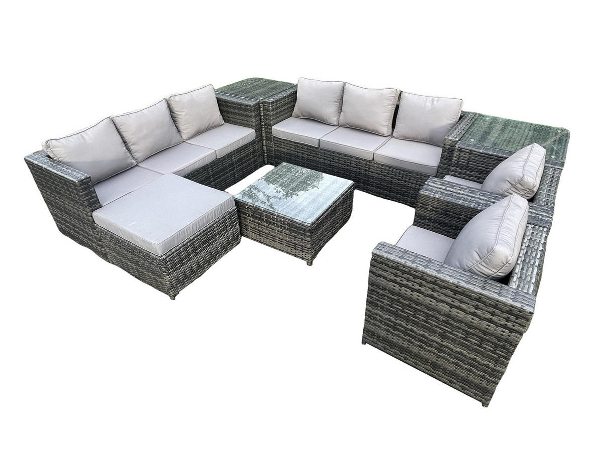GARTENTISCHGRUPPE Polyrattan 9-Sitzer - Dunkelgrau, Metall - FimousFimous