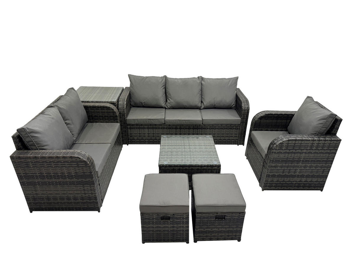 Fimous GARTENTISCHGRUPPE Polyrattan Dunkelgrau 7-teilige