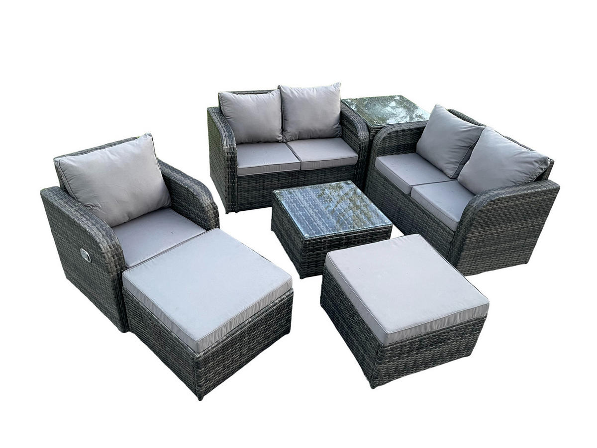 Fimous LOUNGEGARNITUR Polyrattan Dunkelgrau 7-Sitzer