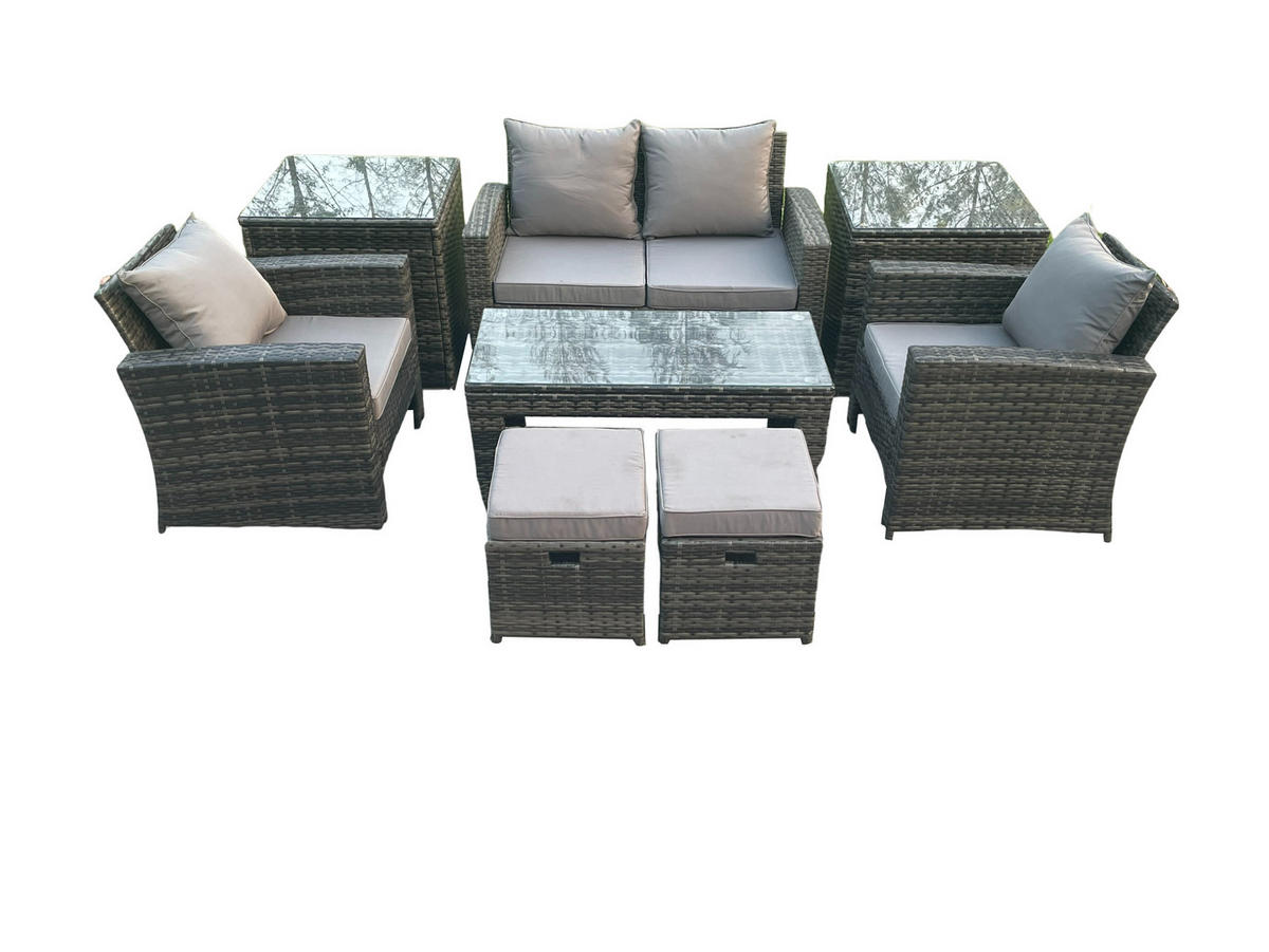 Fimous LOUNGEGARNITUR Polyrattan Dunkelgrau Gemischt