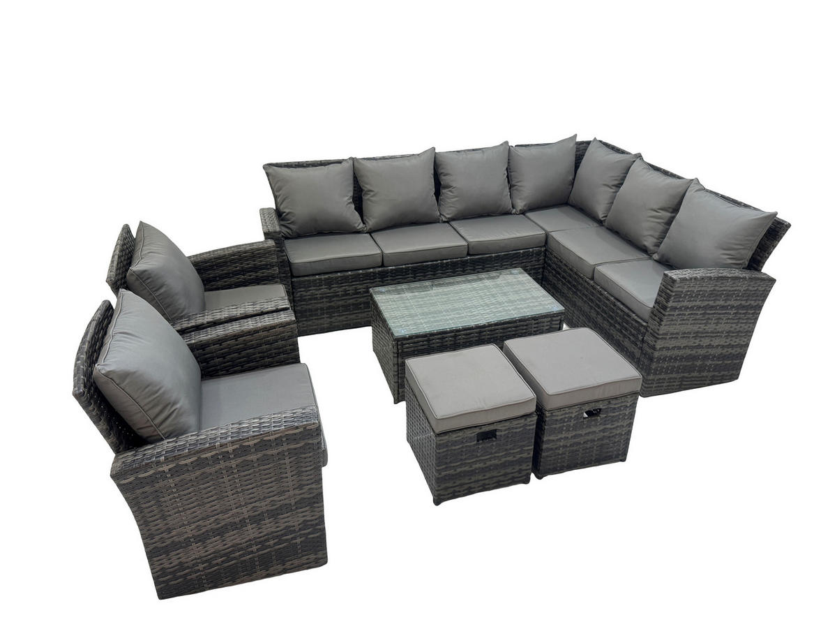 Fimous LOUNGEMÖBEL-SETS mit Couchtisch Sofa Polyrattan Dunkelgrau 10-Sitzer