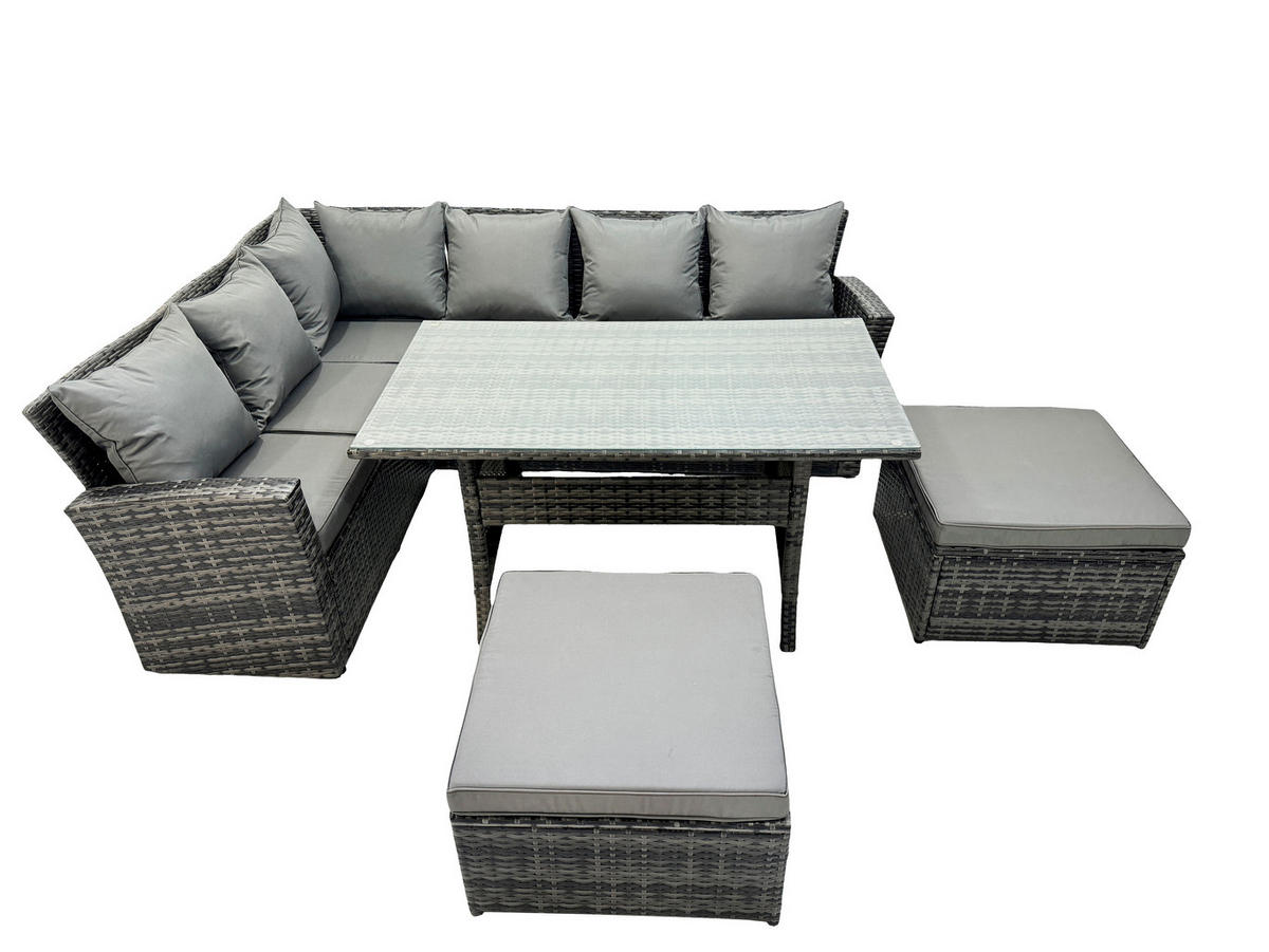 Fimous LOUNGEMÖBEL-SETS mit Esstisch Sofa Polyrattan Dunkelgrau 8-Sitzer