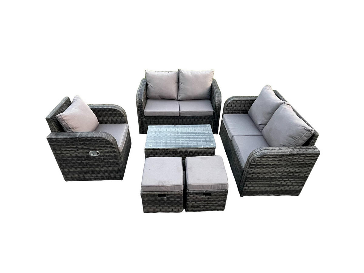• Materialien: Polyrattan,Stoff,verzinkter Stahl,Schaum,Glas