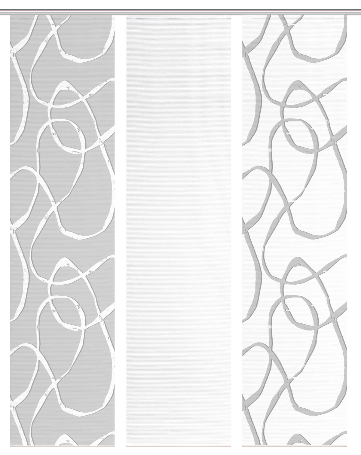 bis ca. 30° C in der Maschine waschbar. Auf beeindruckende Weise pointieren Sie mit diesem 3-teiligen Flächenvorhang-Set in Weiß und Hellgrau (blickdicht) Ihr Zuhause!