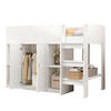 Multifunktionales Hochbett 90*200 mit Stauraum , Schrank und Regalen – Kinderbett mit Leiter und stabiler Konstruktion Grau