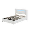 Polsterbett Kinderbett 90x200 Bett mit LED-Lichtleiste, Bluetooth-Player und USB-Aufladung, PU-Leder-Aufbewahrungsbett, Hochbettkasten, Jugendbett mit Lattenrost