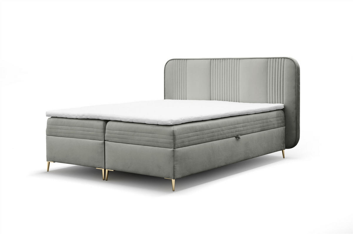 Das extravagante Schlafzimmerbett ALIZE besticht durch das ausgefallene Design. Die Bettkästen sind gepolstert, was dem Boxspringbett Einzigartigkeit und Luxuriösität verleiht. Der Topper aus Kaltschaum passt sich dem Körper an und sorgt dadurch für einen hohen Schlafkomfort. Außerdem bietet das Boxspringbett ausreichend Stauraum für alltägliche und nicht alltägliche Dinge. Das eingebaute Liftsystem ermöglicht ein kinderleichtes Aufklappen der beiden Bettkästen.