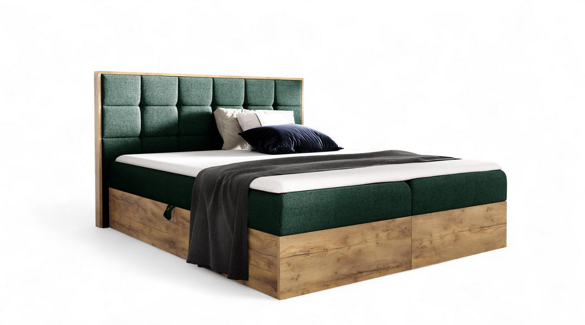 BOXBETT Kalypso überlänge Faro - Grün, Holzwerkstoff/Textil (200/220cm) - Fun Möbel