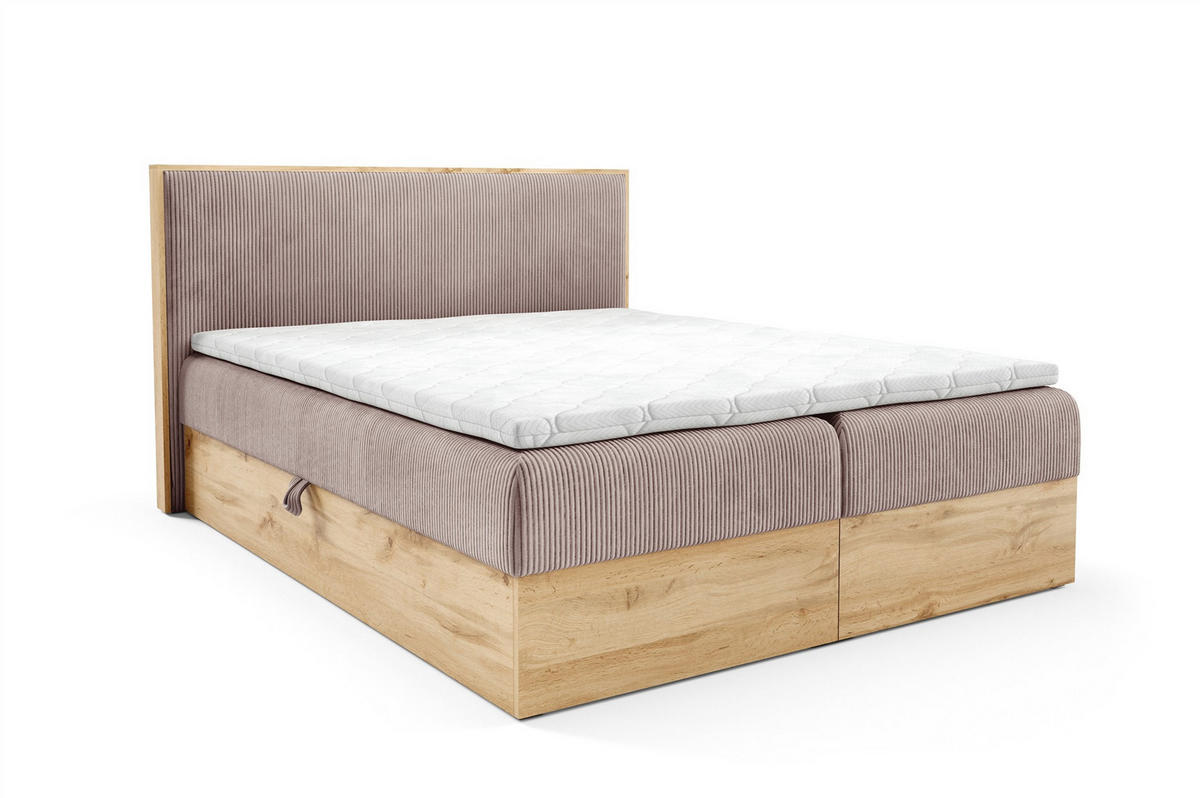 BOXBETT 160/200 cm, in Beige, Matratzen, Topper, Bettkasten, gepolstertes Kopfteil, H3 + H3 = fest