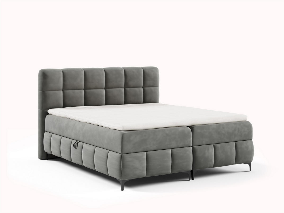 BOXBETT 200/200 cm, in Beige, gepolstertes Kopfteil, Bettkasten, Topper, Matratzen, H3 + H3 = fest
