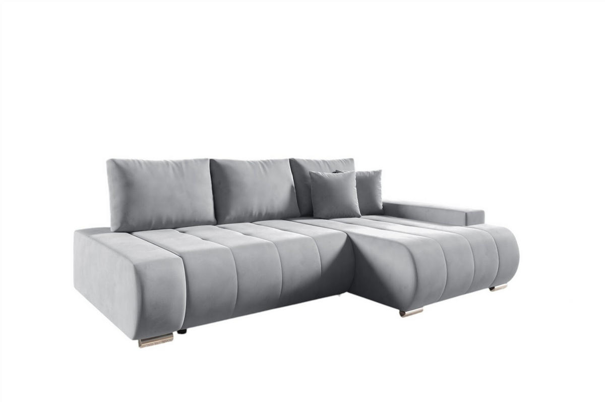 ECKSOFA inkl.Funktionen Grau Webstoff Bettkasten, Schlaffunktion, Rücken echt, Kopfteilverstellung