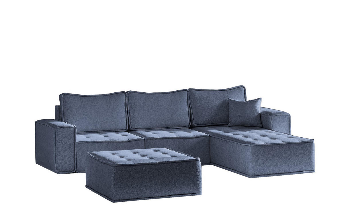ECKSOFA Sande In Raven - Blau, Holzwerkstoff/Textil (292/192cm) - Fun Möbel
