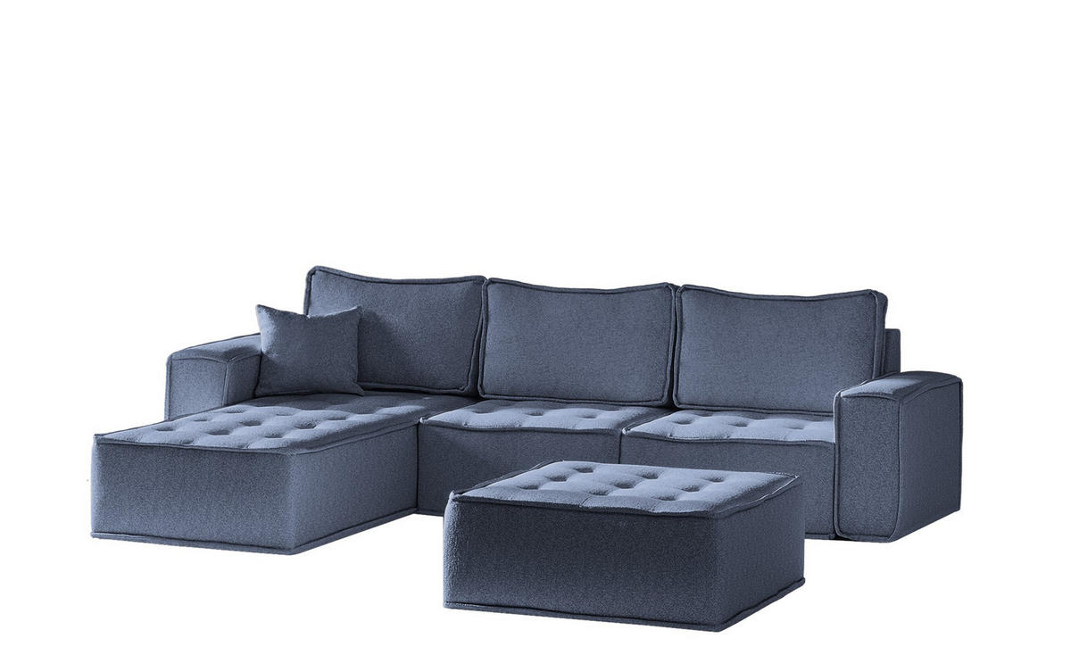 ECKSOFA Sande In Raven - Blau, Holzwerkstoff/Textil (292/192cm) - Fun Möbel