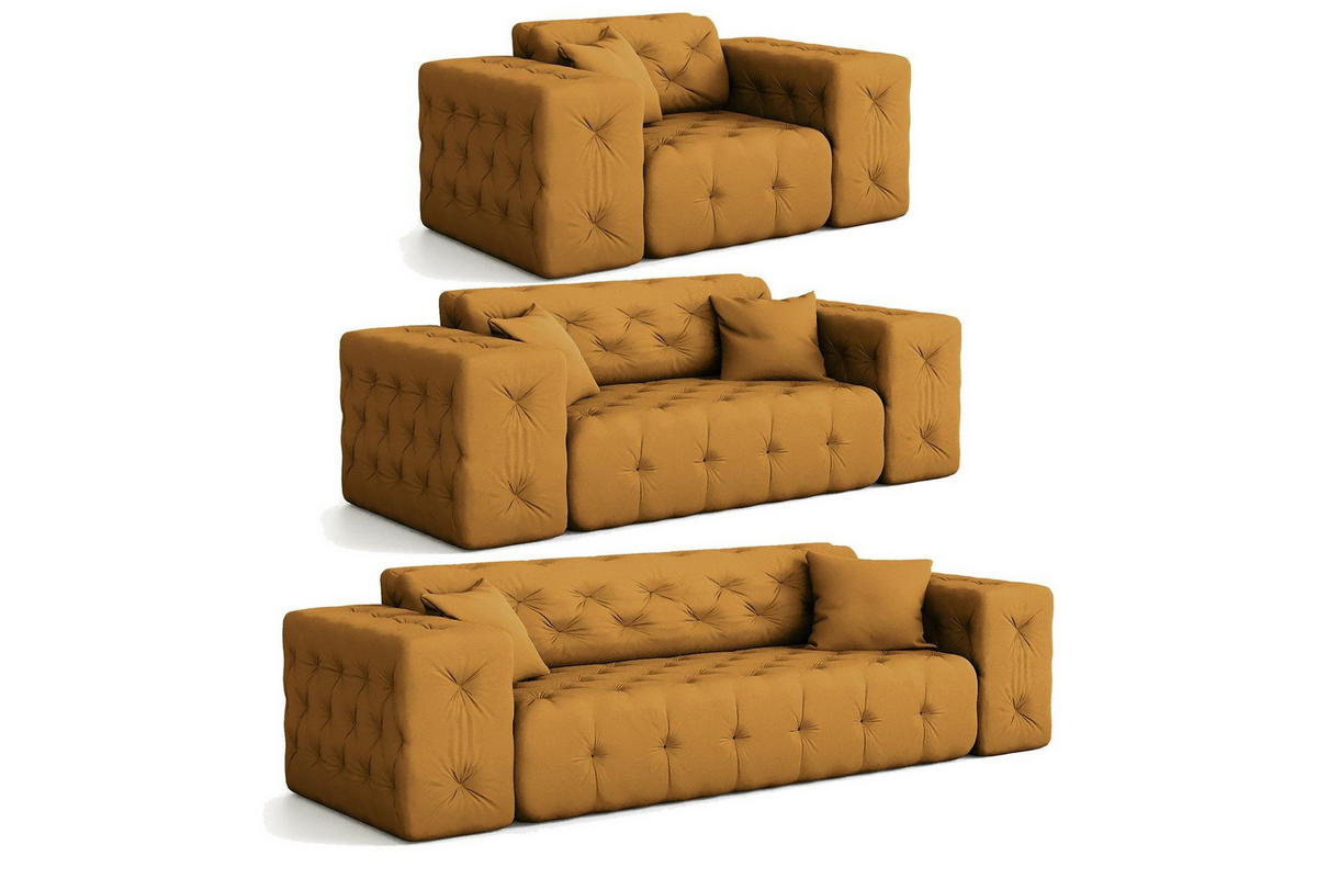 Sofaset Designersofa - CHANTAL -(Sofa 3-Sitzer + Sofa 2-Sitzer + Sessel)Mit seinem opulenten Erscheinungsbild ist unser Sofaset CHANTAL nicht zu übersehen. Dieses Sofaset verleiht jedem Raum Gemütlichkeit. Das Sofaset ist dank seiner komfortablen Polsterung an Bequemlichkeit kaum zu übertreffen und lädt zum Entspannen ein.