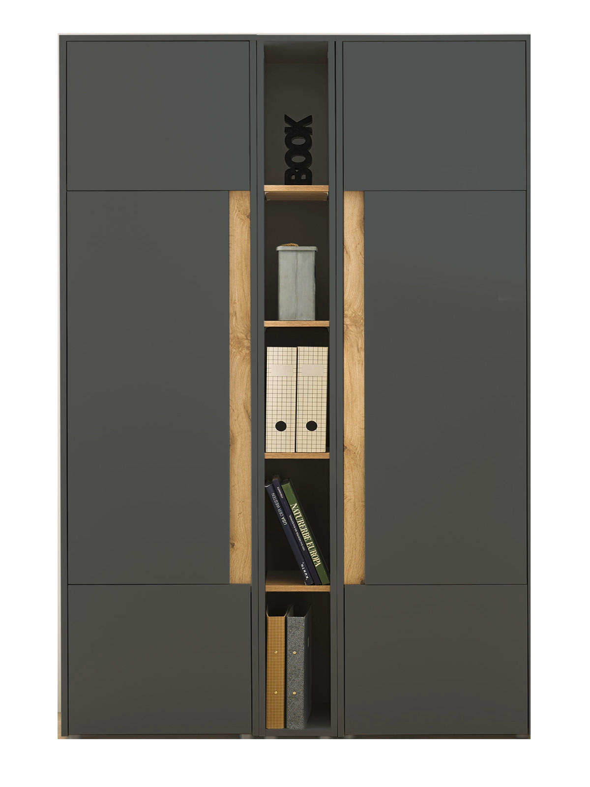 Furn.Design AKTENSCHRANK Set 3-teilig grau, Eiche Wotan 120 x 200 cm, Schrank-Regal-Kombination mit 15 Fächern