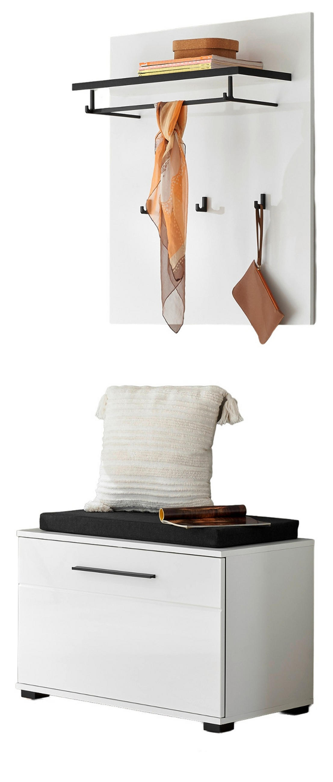Furn.Design GARDEROBEN-SET 3-teilig weiß Hochglanz 80 cm, Kombination mit Stauraum