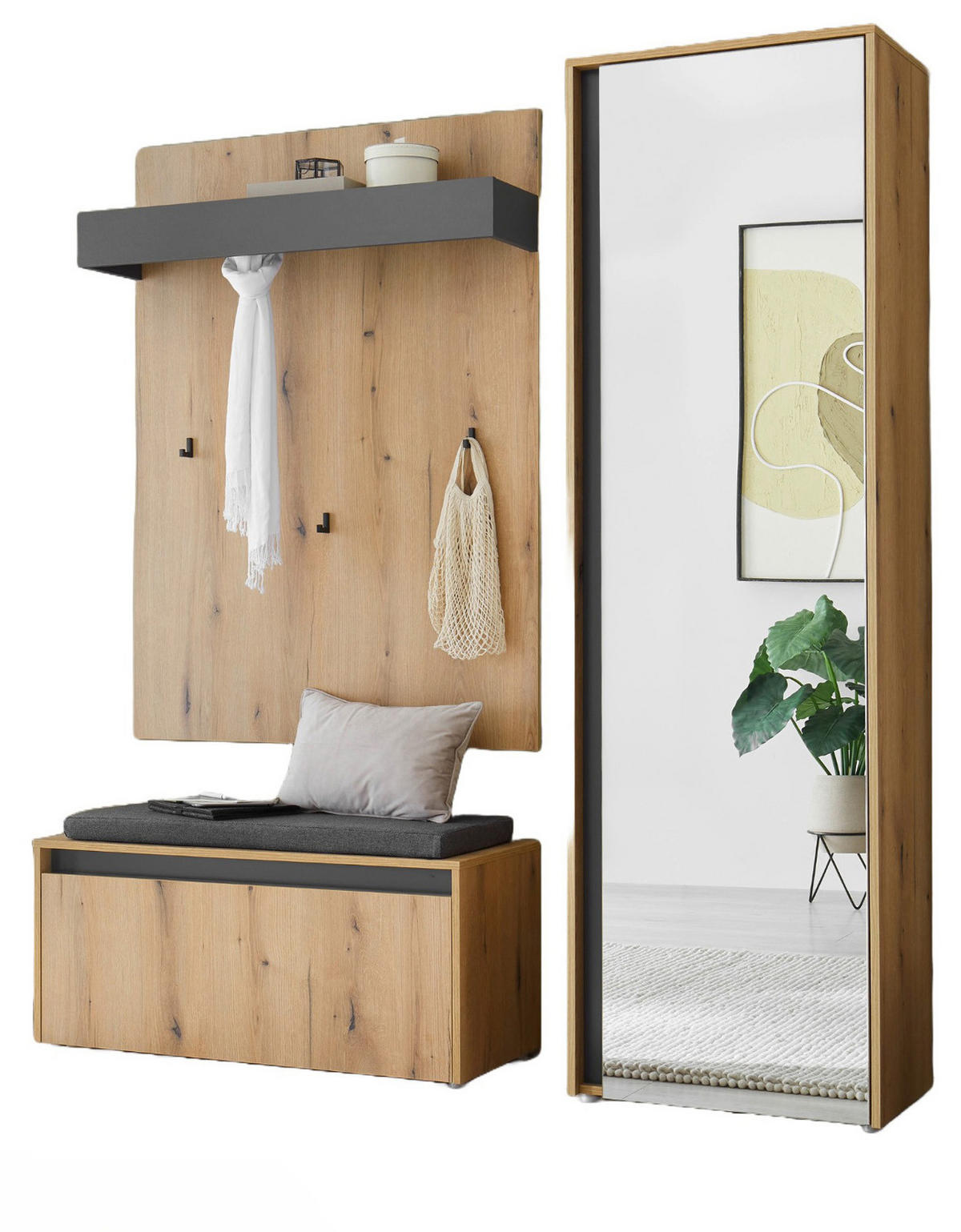 GARDEROBE-SET Evoke Eiche mit Grau, 5-teilige Flurgarderobe 190 cm inklusive Sitzkissen