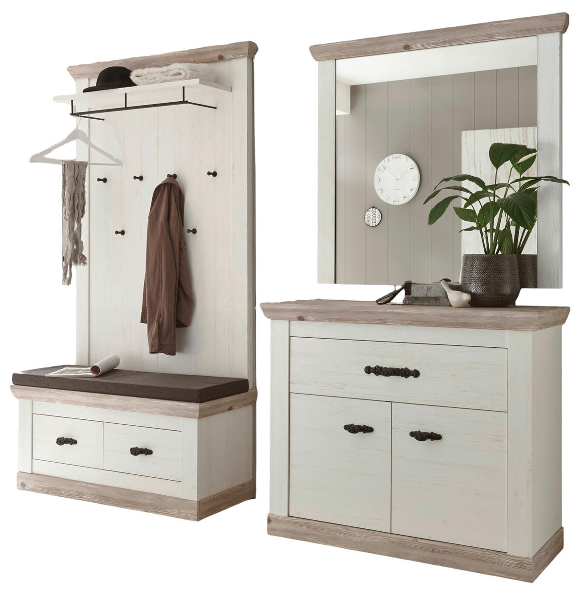 Furn.Design GARDEROBENKOMBINATION Pinie weiß, Oslo Pinie Landhaus, Garderobe Set 4-tlg., 224 x 201 cm