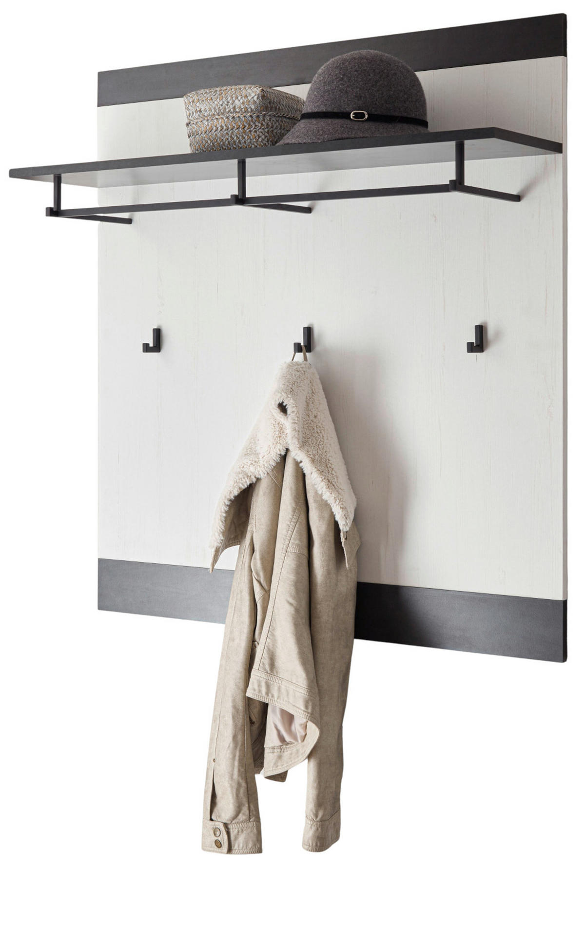 Furn.Design GARDEROBENPANEEL weiß Pinie, anthrazit Landhaus, Wandgarderobe 92 x 100 cm