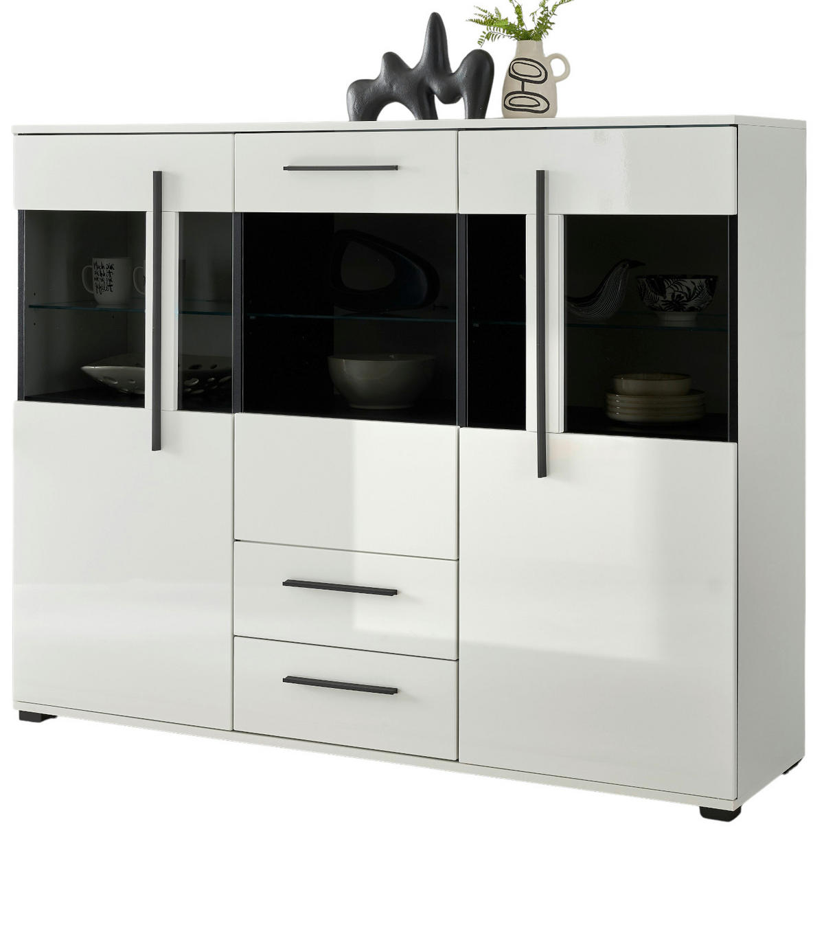 Furn.Design HIGHBOARD weiß Hochglanz 160 cm, Vitrine mit 11 Fächern, Soft-Close