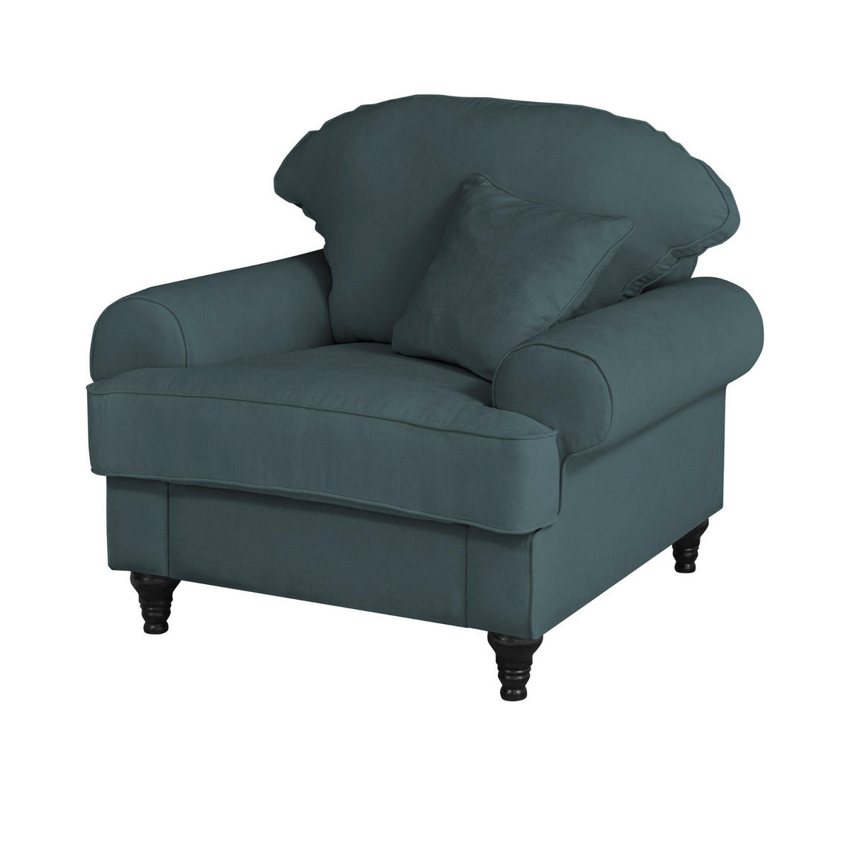 Sessel "Adelina", blaugrün, Landhausstil, 110 cmDer Sessel "Adelina" in blaugrün (110 cm) lädt zum gemütlichen Entspannen und Ausruhen ein und wird gewiss auch Ihr neuer Lieblingsplatz. Der Sessel ist die optimale Lösung für jedes Wohnzimmer, wird mit seinem Landhaus Design auch in Stilfragen Ihren Ansprüchen gerecht und begeistert mit bestem Komfort. Die verwendeten Werkstoffe sorgen für eine besonders hochwertige Qualität. Das Modell "Adelina" von Furn.Design besitzt eine bequeme Polsterung mit Bonell Federkern und ist dank seines Bezugs aus Mikrofaser sehr komfortabel. Es steht fest auf ästhetischen braunen Füßen aus Massivholz. Der blaugrüne Sessel des Herstellers Furn.Design hat Armstützen, welche 63 Zentimeter hoch sind. Lose Kissen machen das Sitzmöbel noch gemütlicher. Das Modell "Adelina" weist ein Breitenmaß von 110 Zentimetern, eine Höhenabmessung von 95 Zentimetern und eine Tiefe von insgesamt 100 Zentimetern auf. Der sehr beständige Bezug übersteht 45000 Scheuertouren. Der Sessel ist für ein Gewicht von maximal 150 Kilogramm ausgelegt. Die Sitzhöhe beläuft sich auf 50 Zentimeter. Die Sitzfläche beträgt insgesamt 57 x 60 Zentimeter. Diesen Landhaus Sessel gibt es in verschiedenen Farbausführungen. Verwandeln Sie mit dem Sessel "Adelina" Ihre vier Wände in eine Wohlfühloase.