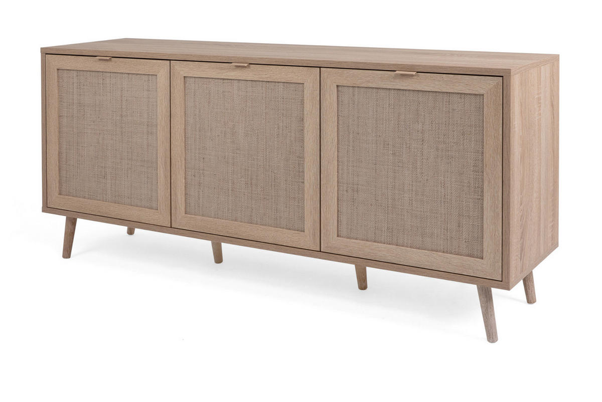 Furn.Design SIDEBOARD Eiche Sonoma, Bast-Dekor 150 cm, Kommode skandinavisch