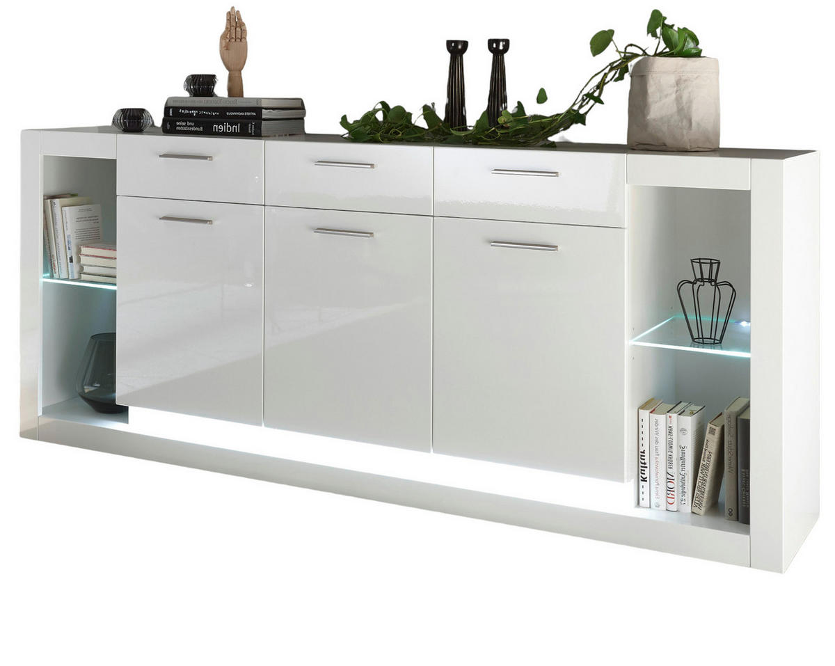 Furn.Design SIDEBOARD weiß Hochglanz 200 cm, große Anrichte mit viel Stauraum