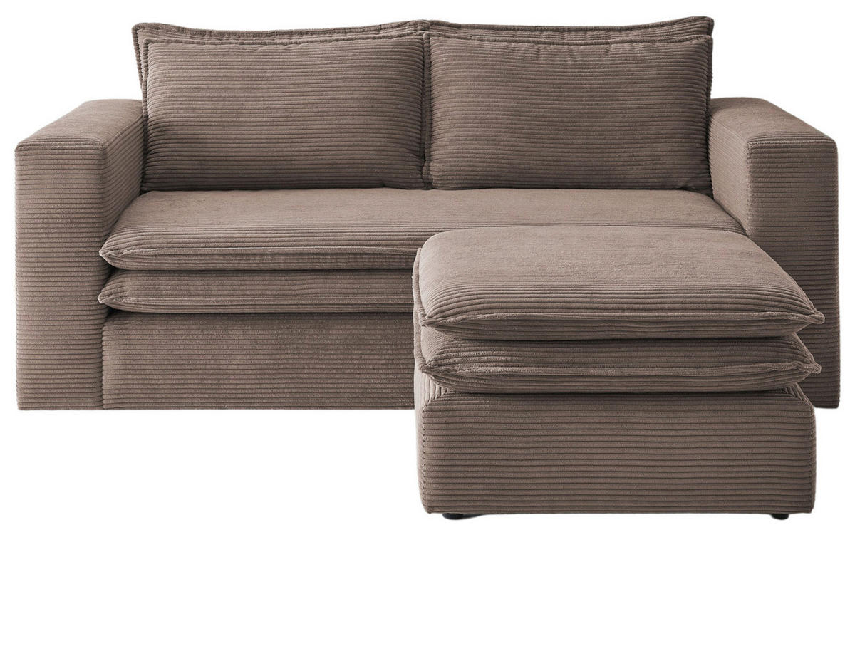 SOFA-SET braun Cord, Couch 2-Sitzer inklusive Hocker - Beige/Braun, Holz/Textil (180/83/161cm) - Furn.DesignFurn.Design
