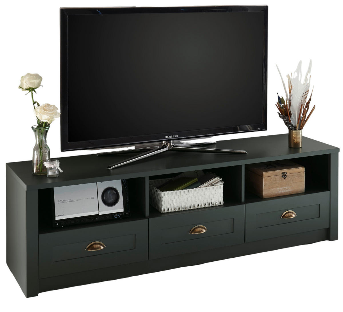 Furn.Design TV-LOWBOARD grün 158 x 47 cm, TV Unterteil im Landhaus-Stil