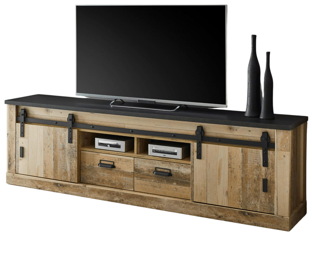 Furn.Design TV-LOWBOARD Used Wood hell, anthrazit 201 x 61 cm, TV Unterteil in Komforthöhe