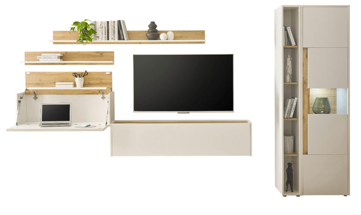 - Set bestehend aus: Sekretär, TV-Lowboard, Wandboard Breite 100 cm, Wandboard Breite 170 cm, Standregal, Vitrine