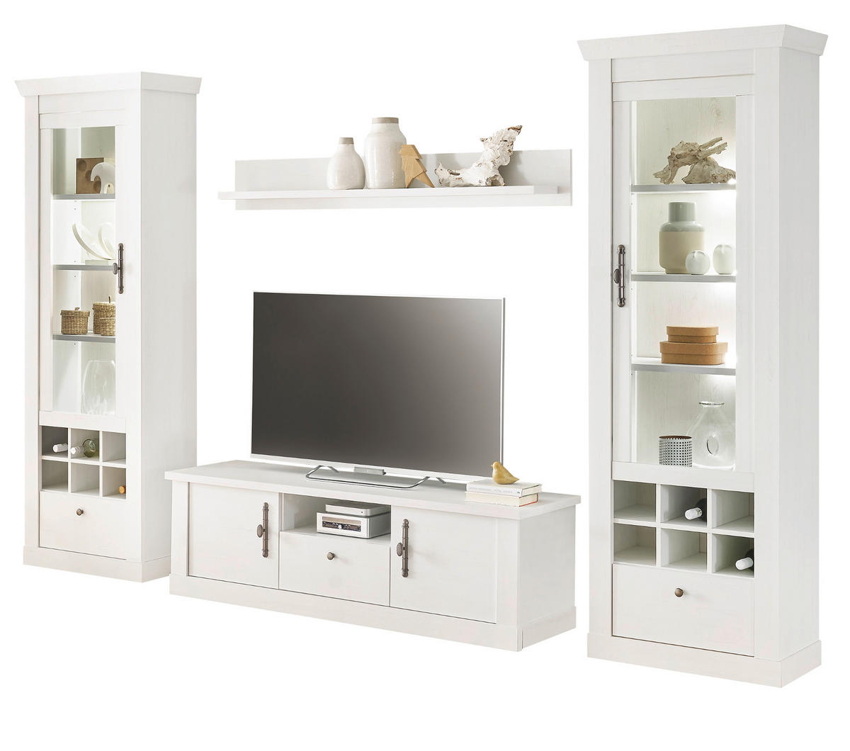 Furn.Design WOHNWAND weiß Pinie Landhaus, Wohnkombination 4-teilig, Soft-Close-Funktion