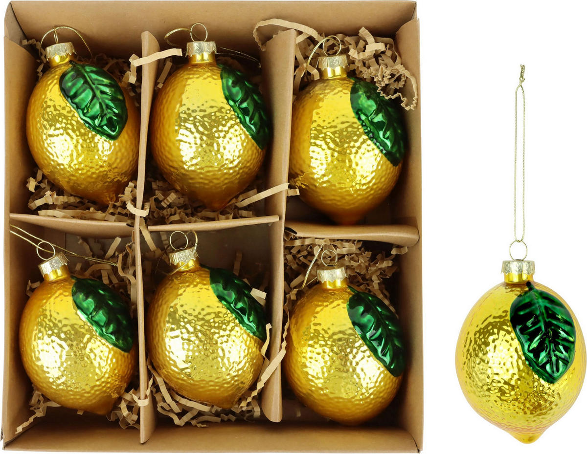 - Das Set besteht aus 6 mundgeblasenen Glasanhängern in Zitronenform mit strukturierter Oberfläche, ca. 9 cm hoch - perfekt für festliche Dekorationen.