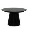 Der mittige Säulenfuß mit vertikaler Lamellenstruktur verleiht dem Tisch eine elegante Optik und sorgt für hohe Stabilität.