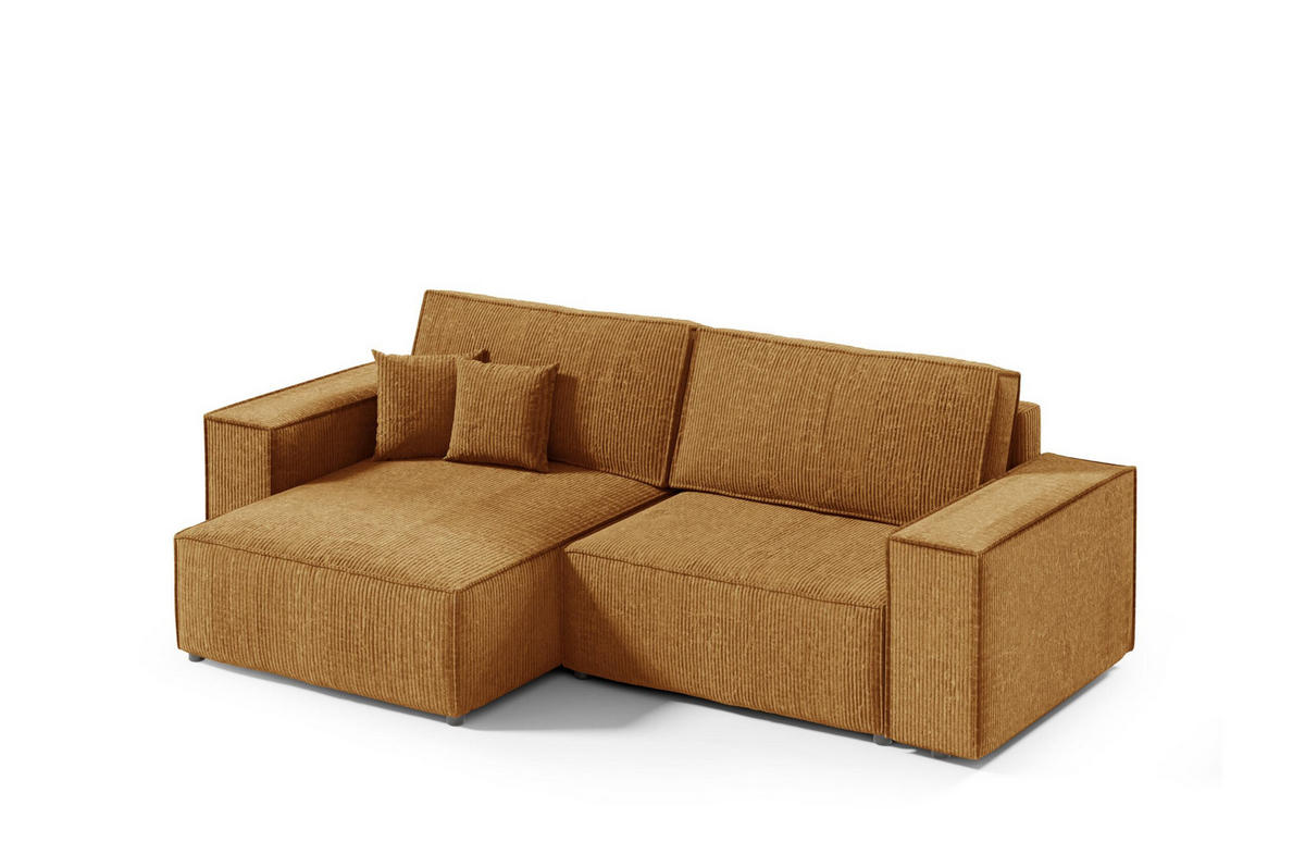 Das Ecksofa MILLE Mini ist ein kompaktes und funktionales Möbelstück – perfekt für kleinere Räume, ohne dabei auf Komfort zu verzichten. Gefertigt aus weichem Cordstoff POSO, vereint es modernes Design mit praktischen Lösungen.