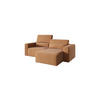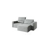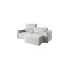 Ausgestattet mit verstellbaren Kopfstützen und inklusive Lendenkissen bietet es optimale Entspannung. Die Sitzfläche mit Wellenfedern und Polyurethanschaum garantiert Stabilität und Komfort, während die Rückseite mit demselben Stoff bezogen ist und somit auch in der Mitte des Wohnzimmers elegant wirkt.