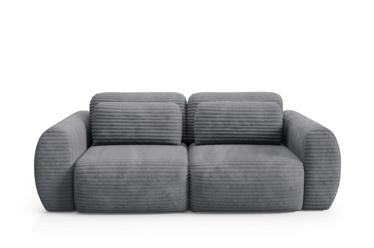 Die Liegefläche misst 200 x 160 cm und bietet somit ausreichend Platz für zwei Personen. Der DL-Ausklappmechanismus ermöglicht ein schnelles und einfaches Öffnen. Zwei große, unter der Sitzfläche integrierte Aufbewahrungsfächer bieten Platz für Bettwäsche oder andere Accessoires, was das Sofa besonders praktisch für moderne Wohnräume macht. Die vollständig mit Stoff bezogene Rückseite ermöglicht eine freie Platzierung im Raum – ganz ohne Wandbindung. Das CLOUD-Schlafsofa ist die perfekte Kombination aus Design, Komfort und Funktionalität – ideal für alle, die ein einzigartiges und stilvolles Möbelstück für ihr Wohnzimmer suchen.