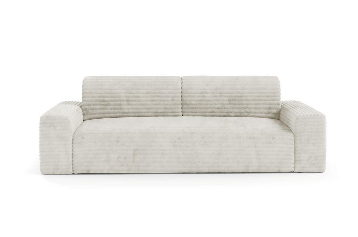 Die Sitzfläche mit Wellenfedern und Polyurethanschaum garantiert Komfort und Langlebigkeit, während die weiche Rückenlehne maximale Entspannung im Alltag bietet. Auch die Rückseite ist mit demselben Stoff bezogen, sodass das Sofa sowohl an der Wand als auch freistehend elegant wirkt.