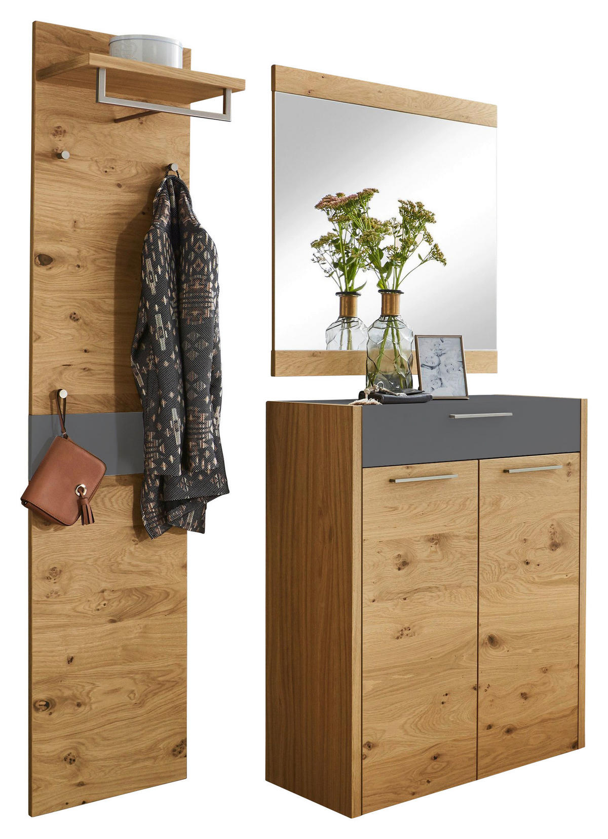 Garderobe (3-teilig) in Eichefarben und Grau für eine geschmackvolle Diele