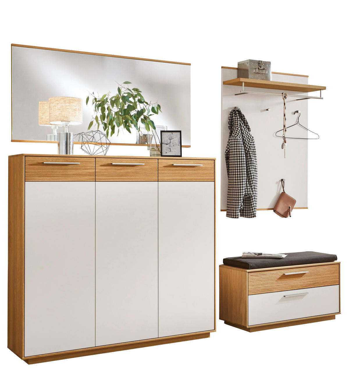 Garderobe (5-teilig) in Taupe und Eichefarben: wohnlicher Look fürs Entree
