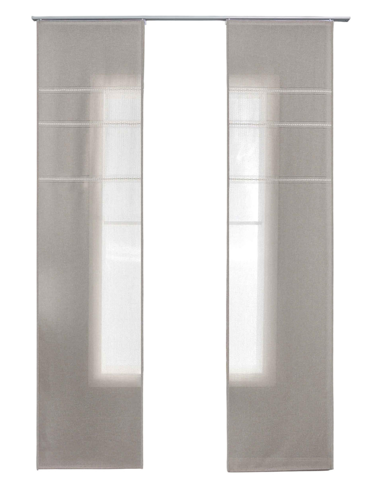 Lieferumfang:2 Schiebegardinen mit je einem Paneelwagen und Beschwerungsstange