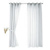 2er Set blickdichte und lichtdurchlässige Vorhänge aus Microsatin mit Ösen. Die Vorhänge werden mit je einem Raffhalter geliefert. Unsere Vorhänge sind blickdicht, gleichzeitig lichtdurchlässig und bieten einen leichten Sonnenschutz. Am Tag zaubern sie durch ihre Lichtdurchlässigkeit schöne Lichtreflexe in die Räume. Am Abend halten sie fremde Blicke fern, da bei eingeschaltetem Licht von außen nur Konturen zu erkennen sind.