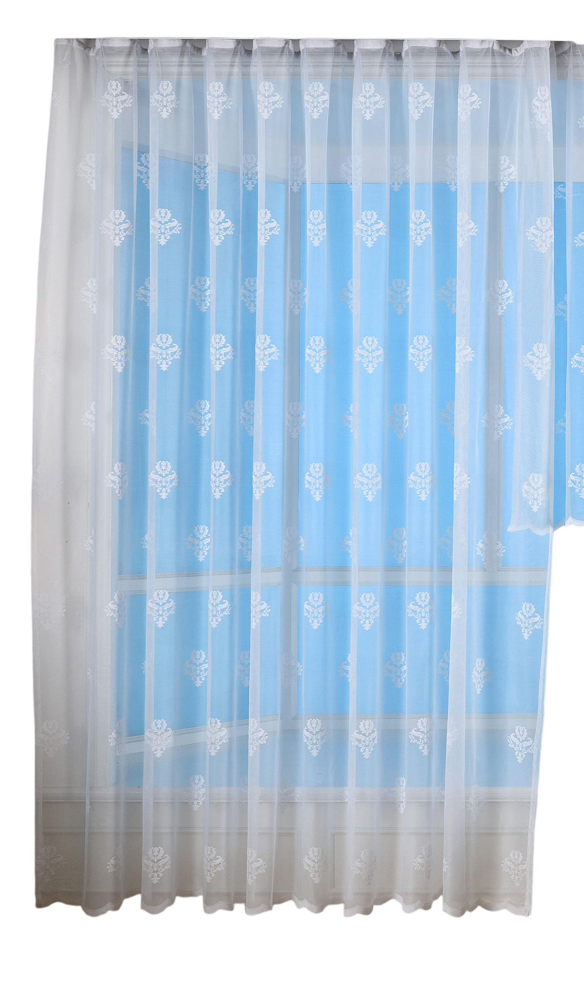 Hochwertiger Barock Bogenstore aus Jacquard mit attraktiven Blumenmuster schafft ein wunderschönes Ambiente in ihrer Wohnung. Jacquards sind Stoffe mit kunstvoll eingewebten Mustern. Diese aufwändige Technik wurde durch Joseph Jacquard zum Anfang des 19. Jahrhunderts erfunden.Über das Universalband an der Gardinenstange oder Gardinenschienen aufgehängt, weist der Store einen schönen Faltenwurf auf. Dieser Jacquard Store ist lichtdurchlässig und pflegeleicht. Wir empfehlen die 3-fache Fensterbreite zu bestellen, um die Gardine durch Kräuseln optimal zu dekorieren.