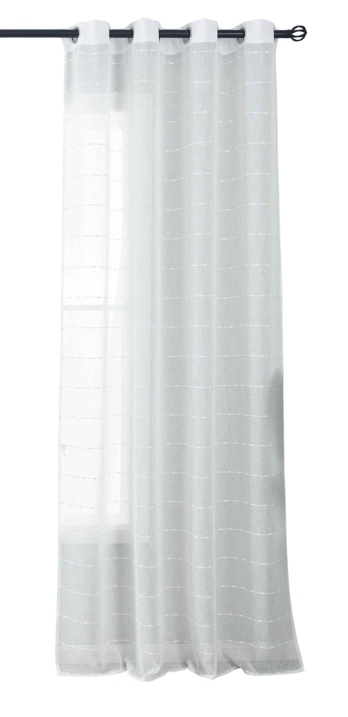 Design:- Feine, horizontal verlaufende Streifen, die gleichmäßig über die gesamte Breite der Gardine verlaufen, sorgen für ein harmonisches und zeitloses Erscheinungsbild.